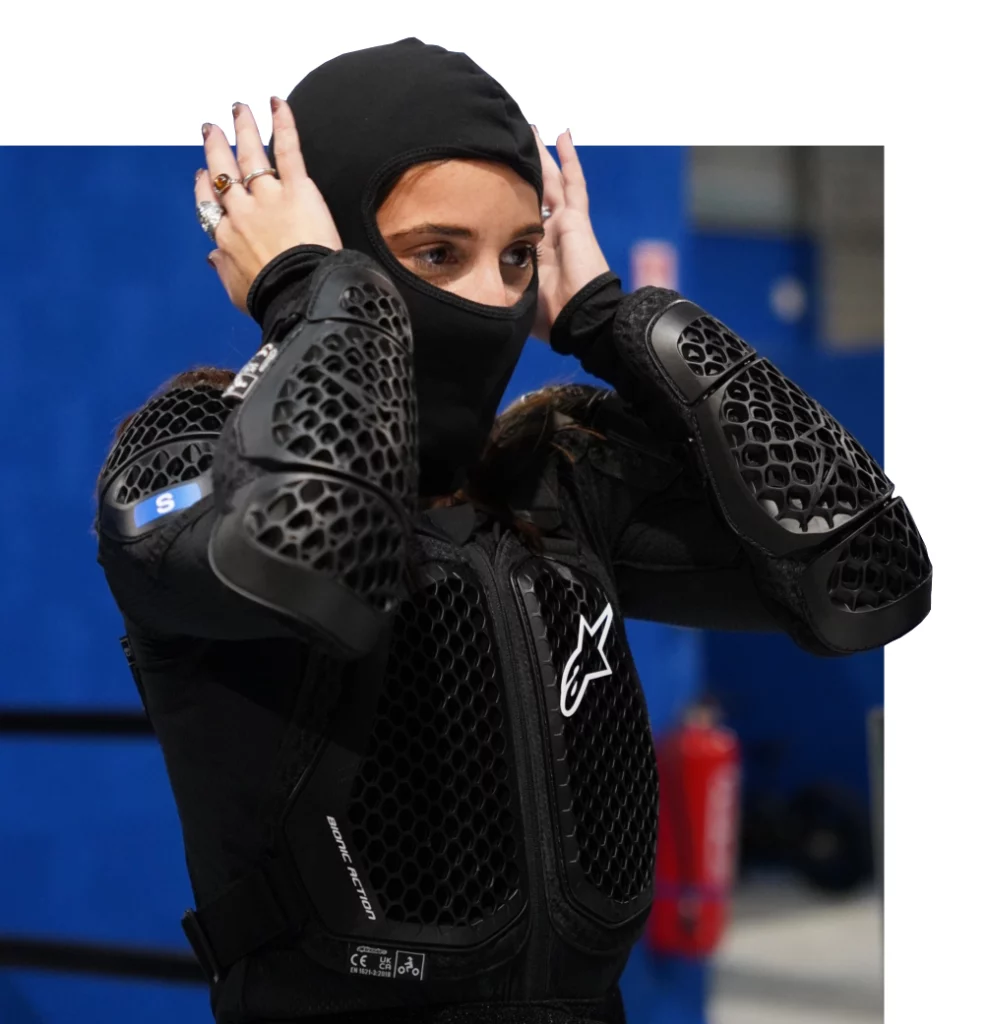 • Équipement complet fourni : casque, gants, gilet intégral, genouillères et chaussures.